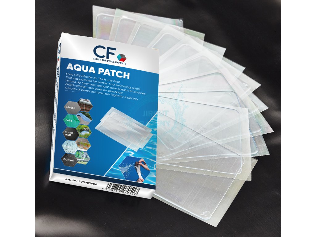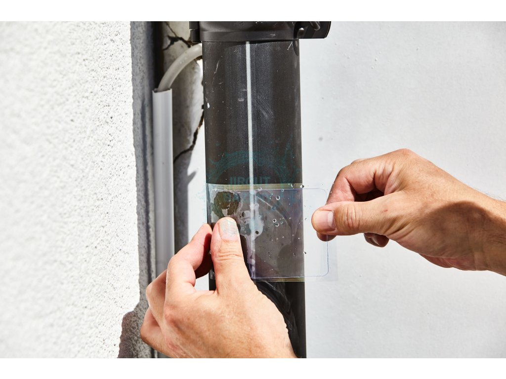 Extrémně silná a vodotěsná opravná páska AQUA PATCH. Slepíte materiály jako plast, fólie, kov, guma nebo sklo. S lepící páskou lze také bez problémů lepit odpovídající materiály pod vodou. Snadno opravíte: malá poškození zahradních hadic, stříšek, fólii v jezírku, plastových jezírek, fólii v bazénů, drenážní trubky, vše co potřebujete rychle opravit. Lepicí podložky o rozměrech 70 x 100 mm lze individuálně zastřihnout na míru, aby se optimálně přizpůsobily podmínkám opravy.
