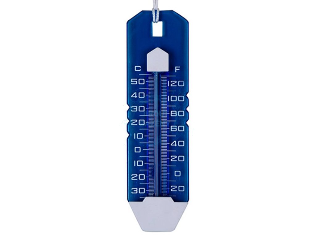 Bazénový teploměr ponorný - neplovoucí. Teploměr do bazénu nebo vířivky spolehlivě upevníte pomocí provázku. Teploměr měří teplotu v rozsahu 0 - 50 °C. Délka teploměru je 27 cm.