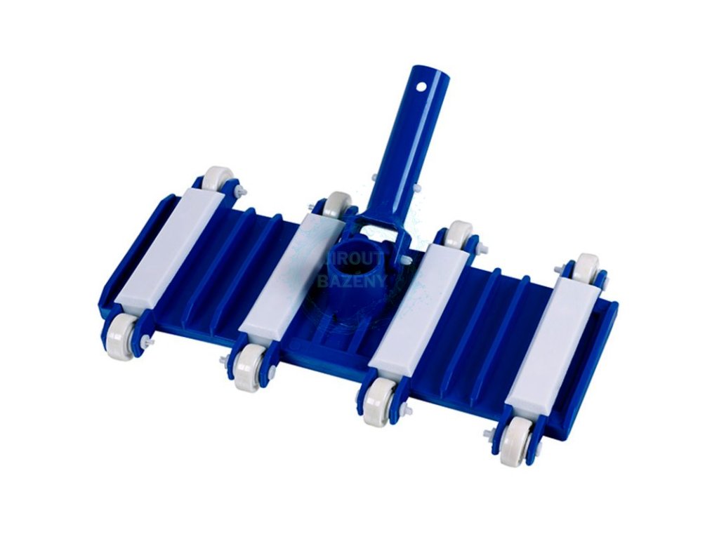 Díky kolečkům se po dně bazénu pohybuje plynule. Obsahuje postranní kartáče, díky kterým vyčistí dno bazénu. Připojení je možné na standardní teleskopickou tyč a na vysavačovou hadici 38 mm (bazénová teleskopická tyč ani bazénová hadice není součástí balení). Ve spodní části má závaží, aby lépe držel u dna. S tímto kvalitním ručním vysavačem bude váš bazén vždy dokonale čistý.