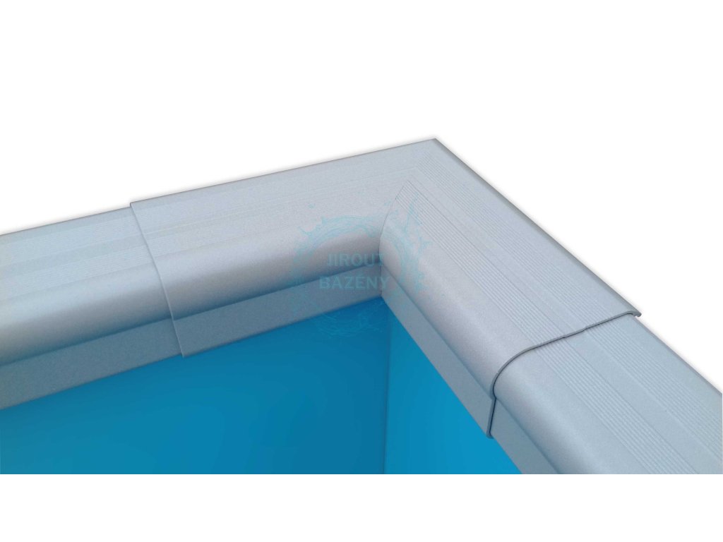Hliníkový lem X-SHAPE Silver na bazén o rozměru 3,5 m x 8 m (půlený) s protiskluzovou úpravou je originální a kvalitní způsob ukončení hrany bazénu. Jedná se o nový bazénový lem X-SHAPE. Lem lze namontovat na všechny plastové skimmerové bazény ve tvaru obdélník s ostrými rohy se stěnou o síle 6 - 8 mm.