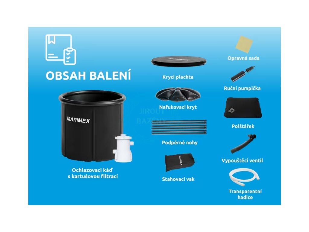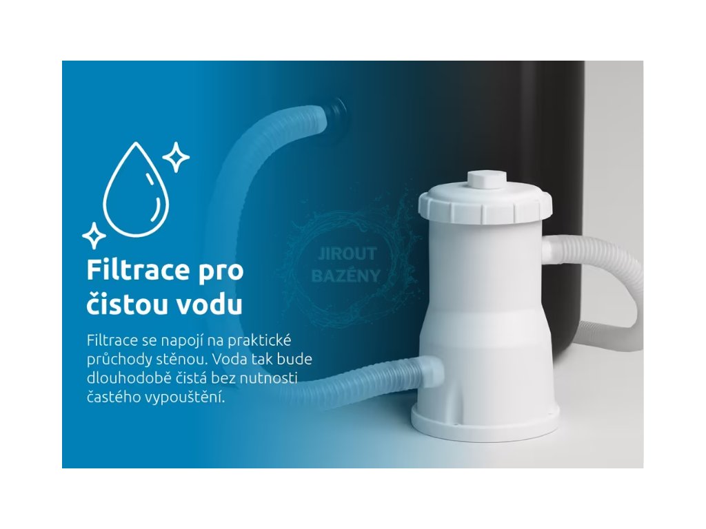 Součástí balení ochlazovací kádě je kartušová filtrace (včetně hadic a všech propojovacích dílů), která se snadno napojuje na průchody stěnou. Díky tomu zůstává voda v kádi čistá a průzračná po delší dobu. Filtrace efektivně odstraňuje nečistoty a zajišťuje pohodlnější a hygieničtější používání bez nutnosti časté výměny vody.