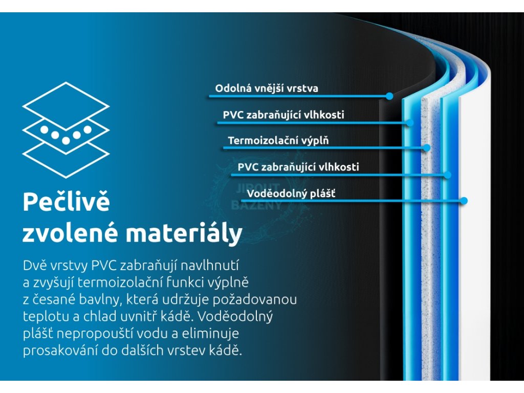 Termoizolační vrstva v podobě česané bavlny udržuje požadovanou teplotu a chlad uvnitř kádě.
