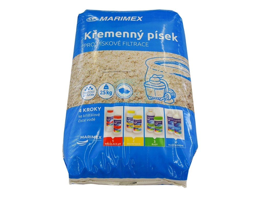 Písková náplň - křemenný filtrační písek - do pískových filtračních zařízení o zrnitosti 0,6 - 1,2 mm. Funguje jako přírodní filtr, zachytává mechanické nečistoty a zajišťuje nejen čistou a průzračnou vodu, ale zároveň pomáhá udržovat její správné pH.