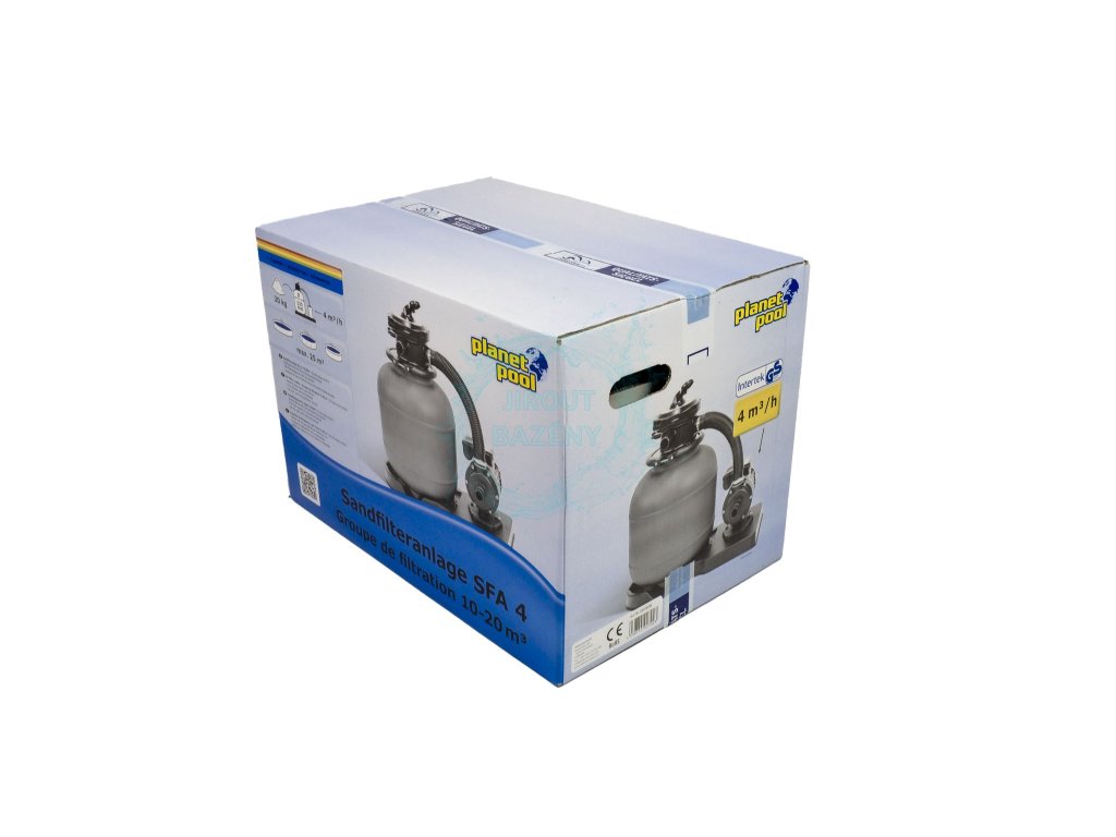 Písková filtrace je srdcem každého bazénu, které zajišťuje, aby voda v bazénu byla kvalitní a krásně čistá. Filtrace SFA 4 je určená pro bazény s objemem do 20 m3. Filtrační nádoba je vyrobena z kvalitního polypropylenu, pojme 20 kg filtračního písku a odolává korozi a běžné bazénové chemii. Součástí filtrační nádoby je praktický vypouštěcí ventil. Hlava filtrace je vybavena 6cestným ventilem, tělo filtrace je usazeno na stabilní základně. Filtrace je určena pro venkovní použití a je odolná proti povětrnostním vlivům. Filtraci lze používat i se slanou vodou.